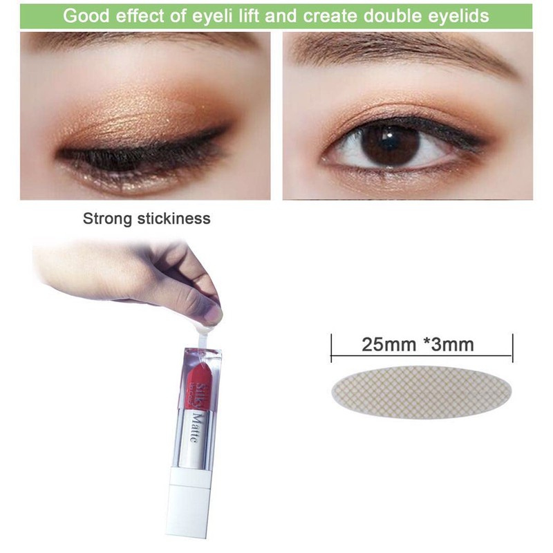 small stripe placed on your eyelid. In only few seconds is the eye lifted and corrected. In addition, These stripes (eyelid tape) are applicable for all skin