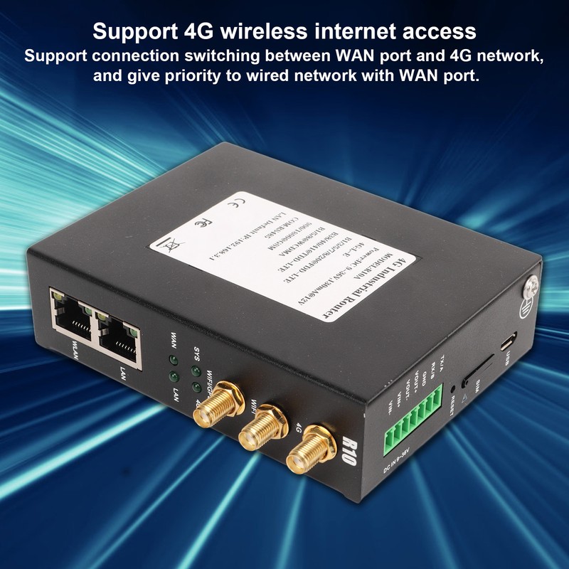 1、4G Wireless Internet Access: Support the connection switching between WAN port and 4G network, and give priority to the use of WAN port wired network. You can set parameters such as APN. 2、Anti Drop: Support online detection, automatic reconnection after dropping, ensure that the device is always online, support monitoring the online status of the network device accessed by the LAN port, and report through the platform. 3、RS485 RS422 Design: Support RS485 and RS232 serial port transparent transmission and for MODBUS RTU to TCP; GPS is supported, and positioning data can be released through MQTT. 4、Compatible Protocols: Support VPN protocols such as L2TP, IPSEC and OPENVPN; Support IPTABLES firewall; Support for MODBUS and MQTT protocols and SSL encryption. 5、Complete Router Functions: With multiple internet access modes, automatic allocation, designated IP, PPPoE. Support dynamic DDNS: support peanut shell, 88IP and dyndns domain name service providers. 6、Remote Management: Support SMS and email for alarm, support web page remote upgrade, cloud remote background management and remote configuration. Support one time timer, periodic timer and cycle timer.