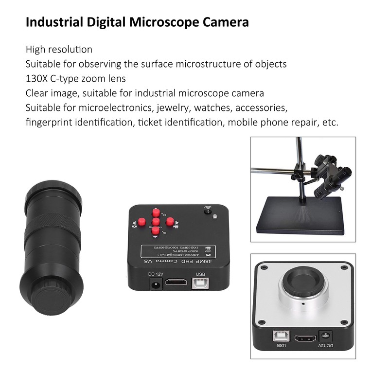 48MP 1080P Microscope Camera 130X Zoom CMount Lens for PCB Repairing Welding