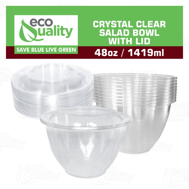 • Amazing Presentation: 48 oz (ounce) Crystal Clear container with matching lids. Top of the line presentation for prepared and on the go products. Eco Friendly!
