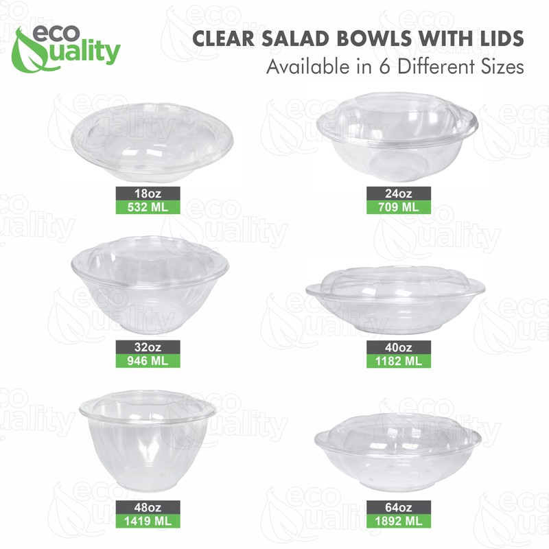 48oz Clear Disposable Salad Bowls with Lids (150 Pack) - Clear Plastic Dispos...