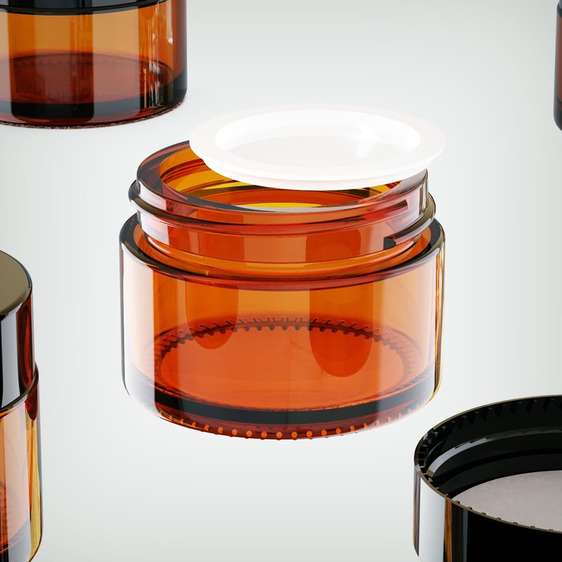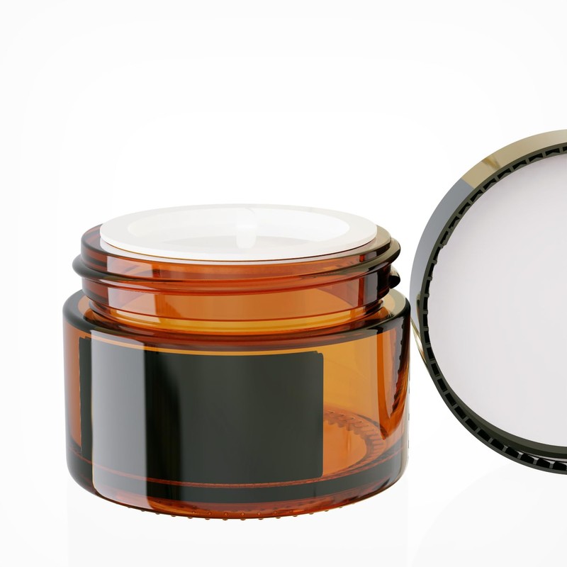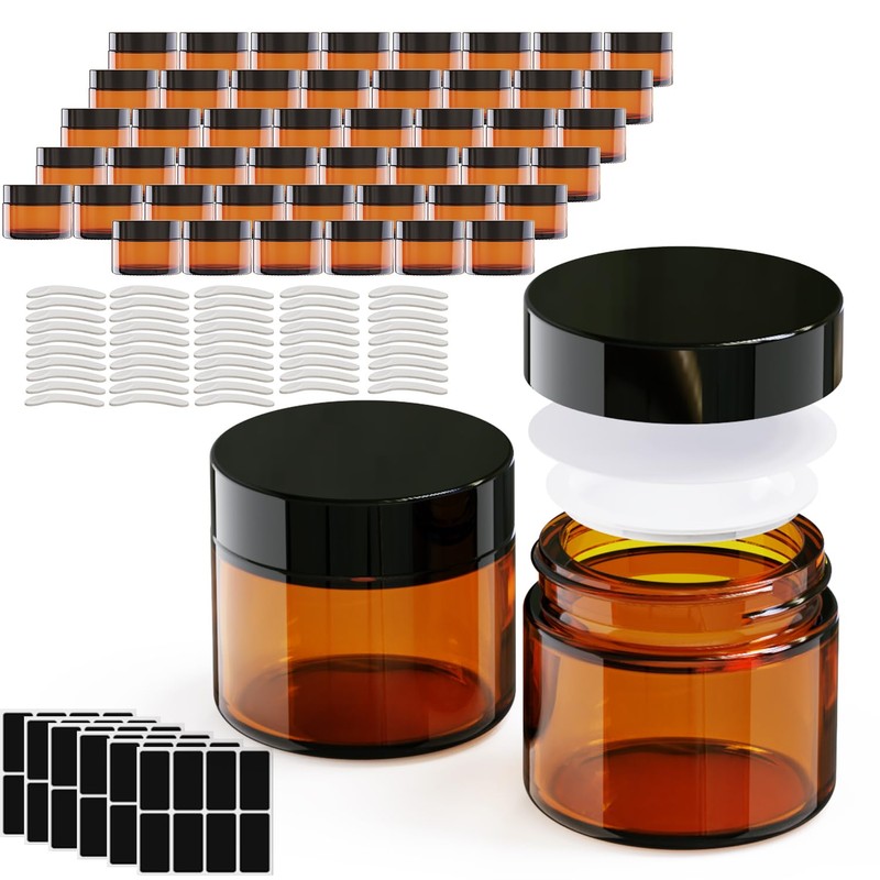 - CAPACITY: 48pack 1 oz amber glass jar with black lid, perfect for storing small quantities of cosmetics and skincare products,and DIY candels. Coming with lables and Inner Linner.