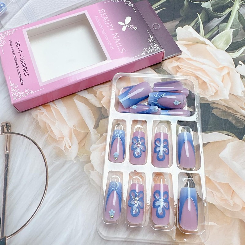 - Easy to Use: After trimming and cleaning your nails, choose a flower false nail that is suitable for your own nail size, apply with glue, and then press it on your nails for 15 seconds, then you can have a perfect new nail