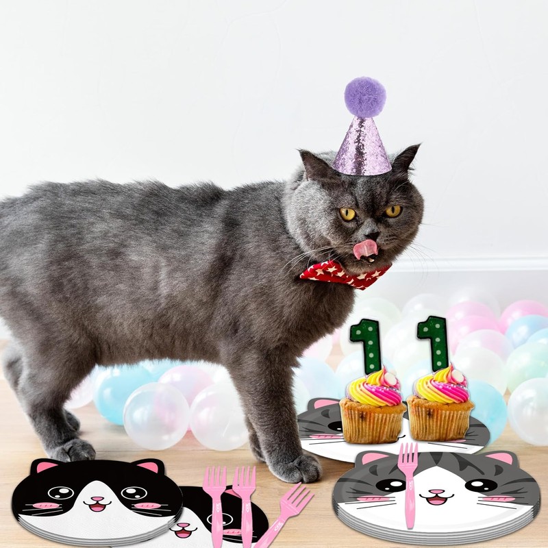 - [Cat Party Decorations]: These party supplies make your party easy, they include 16*7-inch plates,16*6.7-inch napkins,16*forks.
