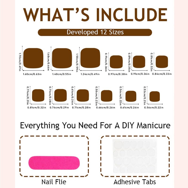 - 【What You Will Get】:A box contains 24 fake nails, a nail file and 24 jelly glues,a nail file,the fake nails are divided into 12 different sizes.The soft elastic and seamless cuticle line conforms perfectly to the nail bed.Nail art stickers in various sizes, convenient for you to choose the nail tips that suits your nails.