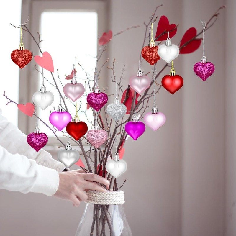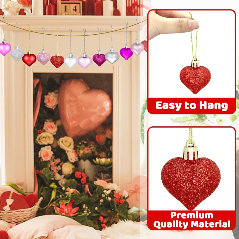 - Abundant heart ornaments set: Valentines Day heart ornaments set comes with 48 pieces (red, pink,rose and silver) heart including, 16 pcs glossy surface, 16 pcs matte surface and 16 pcs glitter surface, which is perfect for Valentine's Day tree decorations, Christmas decorations, wedding decorations or other special occasion.