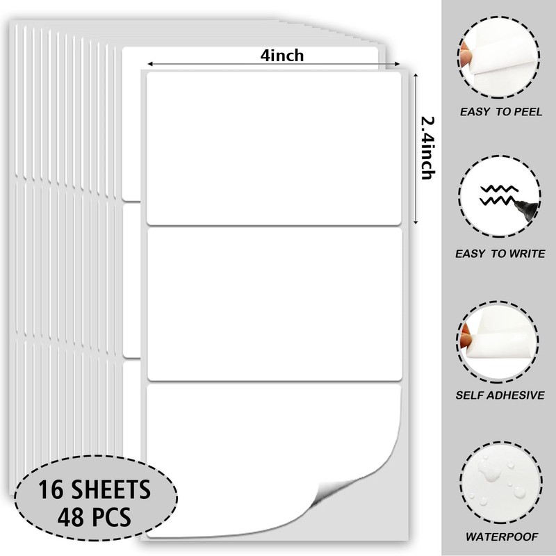Quantity: 16 Sheets(48 Pcs) Large white sticky labels stickers