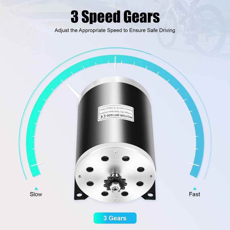 - Powerful Motor: This brush motor is a 48V 1000W brush motor for efficient operation. The powerful motor has a rated speed of 3000rpm so that it can help you drive faster