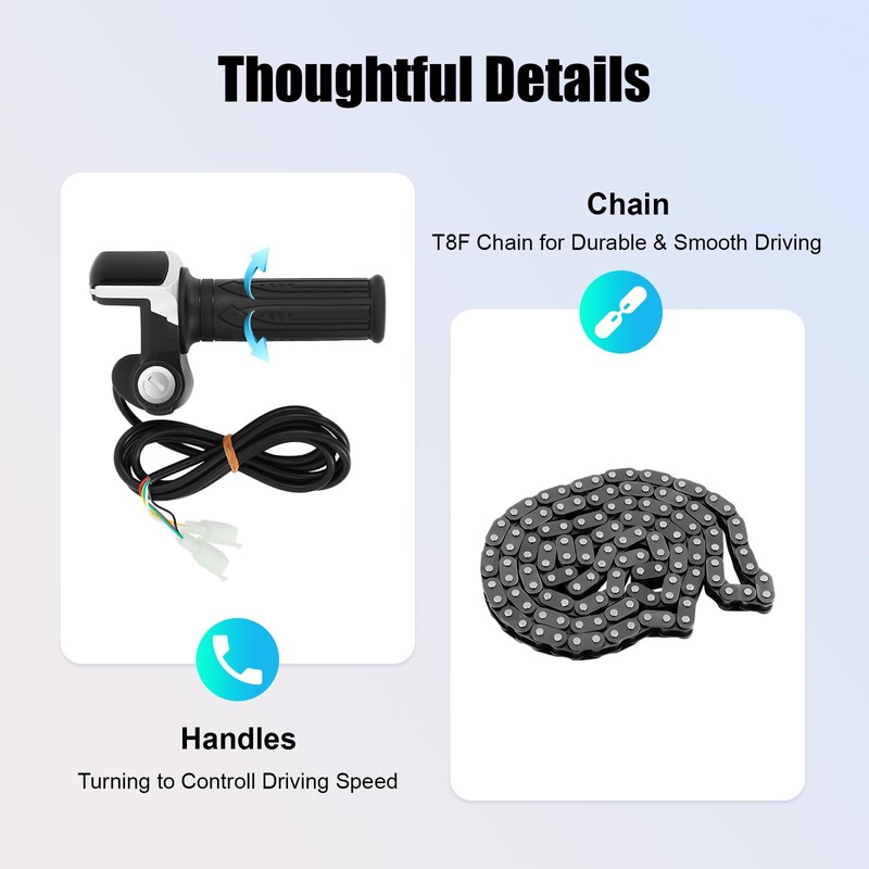 Chain: We provide a T8F chain for you to convert. The thickened chain is not only strong and durable but also smooth to drive.