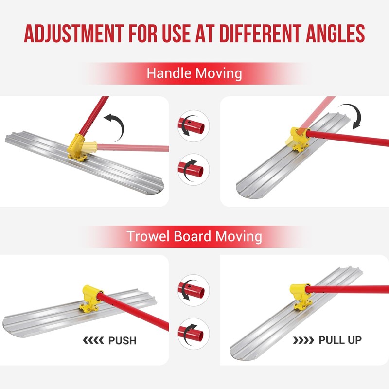 - [High Quality Material] The scraper of this cement trowel is made of high quality magnesium-aluminum alloy, which has good impact resistance and corrosion resistance, and the concrete scraper is not easy to oxidize or rust. The surface is carefully polished and smooth, which can perfectly level the concrete floor. The handle and connector are made of aluminum alloy, lightweight and durable.