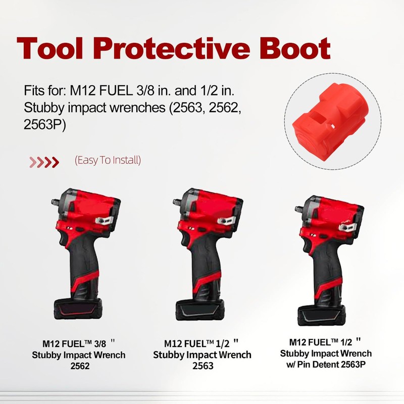 49-16-2563 Impact Driver Protective Boot Fit for milwaukee M12 Fuel 1/2 and 3/8 Stubby Impact Wrenches (Red, 1)