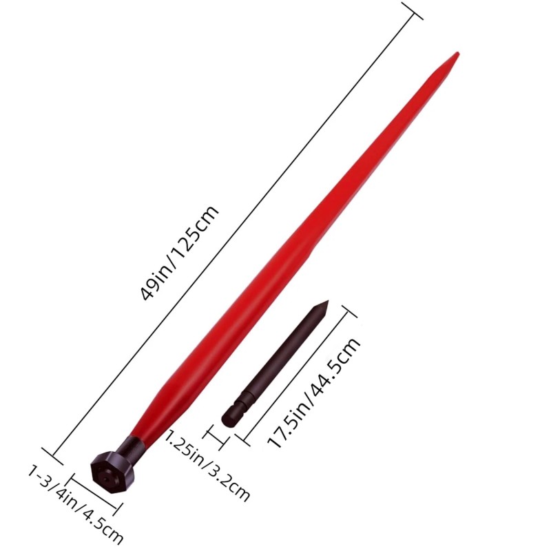 Measuring 49 inches in length and featuring a remarkable load capacity of 4,500 lbs, the bale spear is ideal for heavy-duty farming tasks.