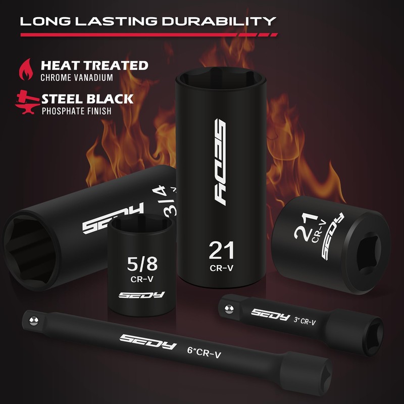 - HIGH DURABILITY - Crafted from CR-V material with a black phosphate finish, our socket set offers unbeatable hardness, corrosion resistance, and long-lasting performance in all environments.