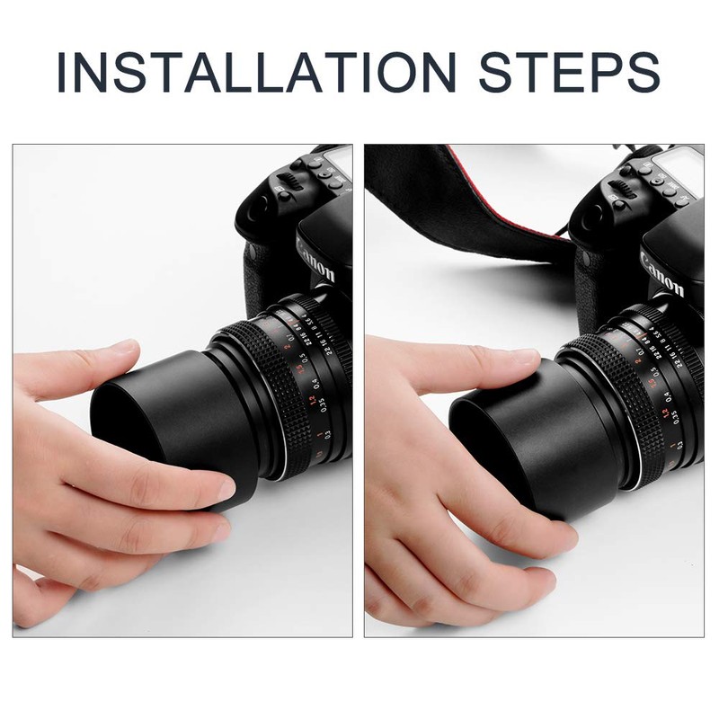 - [Material] :This metal Tele lens hood is constructed of solid lightweight aluminum metal with smooth black surface.