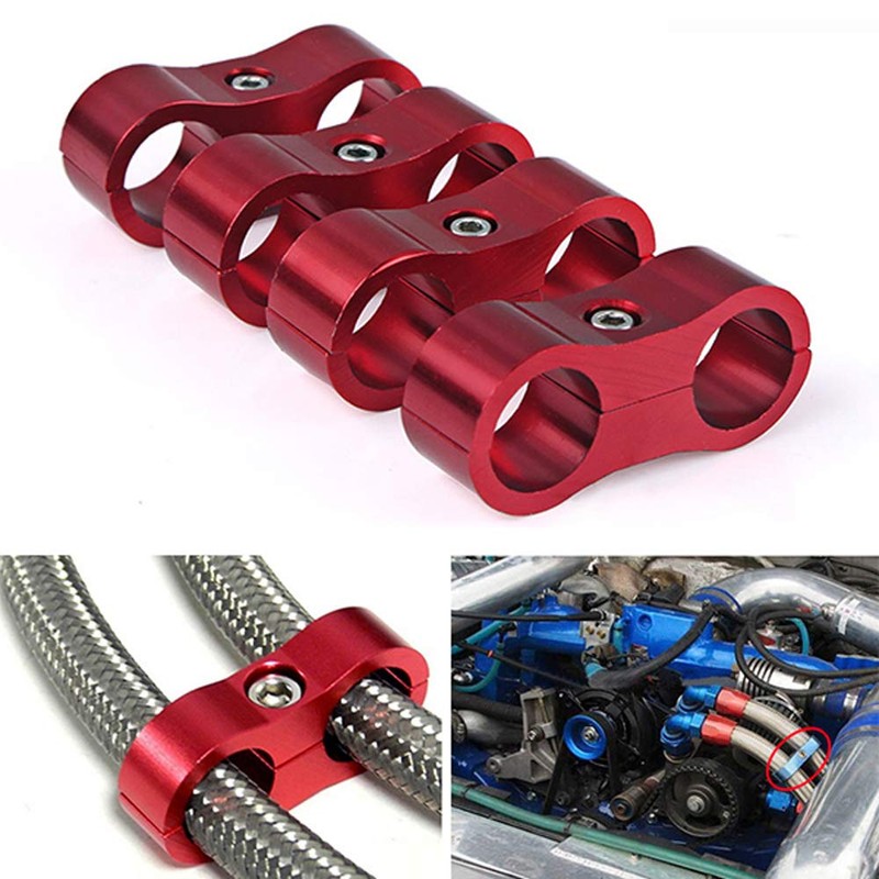 4AN Hose Separator Clamp Aluminum Fuel Line Mounting Clamp Divider Hose Fitting Adapter Fit for 1/4 Fuel Line, Oil Line, Brake Line, Water Pipe and Gas Line,Red,4pcs