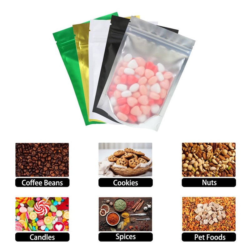 - 【Support Heat Seal】These double sided color bags can be heat sealed for long term food storage. Odor and scents will be kept in baggies, it also perfect for fragrance and wax melts packaging.