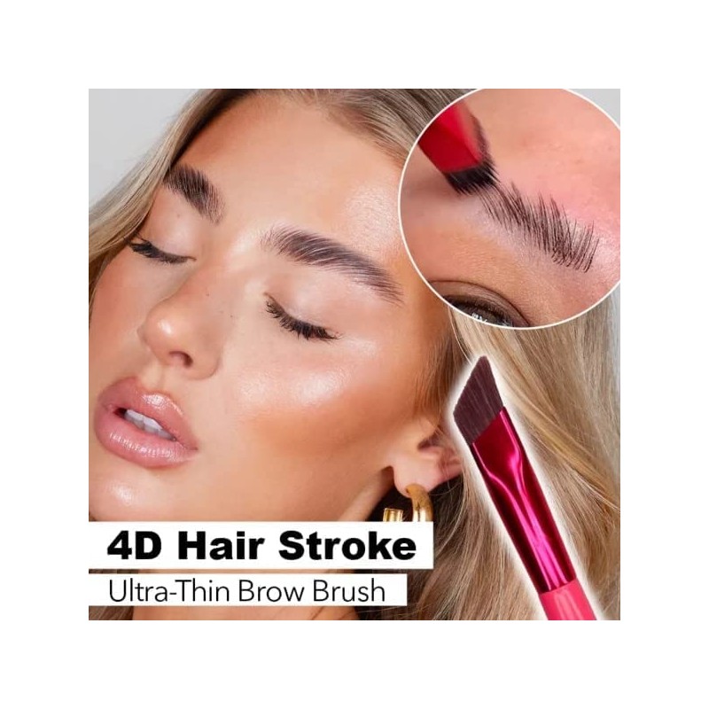 4D Hair Stroke Brow Stamp Brush 4D Hair Stroke Ultra-thin Brow Brush Eyebrow Hair Stroke Brush Professional Angled Makeup Brushes Multifunction Ultra-thin Angled Realistic Eyebrow Brush (Light Brown)
