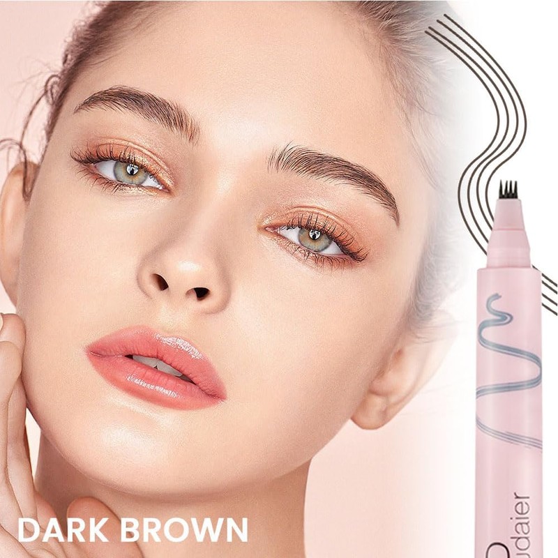 3D Waterproof 4 Fork Tip Eyebrow Pen, Professional Liquid Eyebrow Pencil, Long Lasting Eyebrow Pen for Natural Eyebrow 03# Dark Brown
