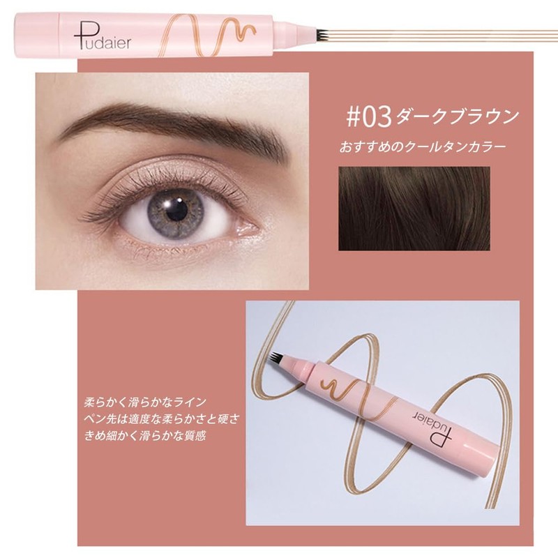 4D Liquid Eyebrow 4 Prong Eyebrow Pencil "36H Lasting Effectiveness" Tattoo Eyebrow Pencil Long Lasting Natural Colored Permanent Eyebrow Cosmetics 4 Tipped Precise Brow Pen,4 Tip Eyebrow(03# Dark