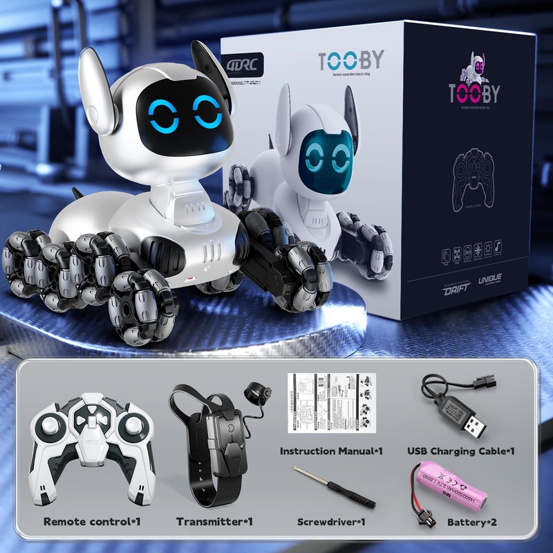 - Dual Remote Controls:It features innovative gesture control for interactive games and a multi-function remote for precise commands. Easy to operate, it's perfect as an entry-level remote-controlled dog toy for kids.