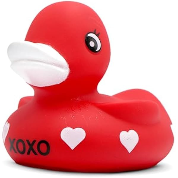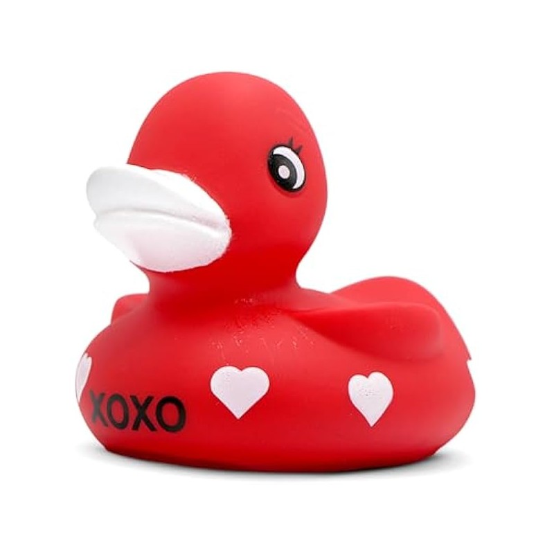 4E's Novelty 3" Valentines Rubber Duck - Large Red XOXO Sweetheart Ducky for Romantic Decoration, Jeep Ducking, Bath Toy, Cake Topper