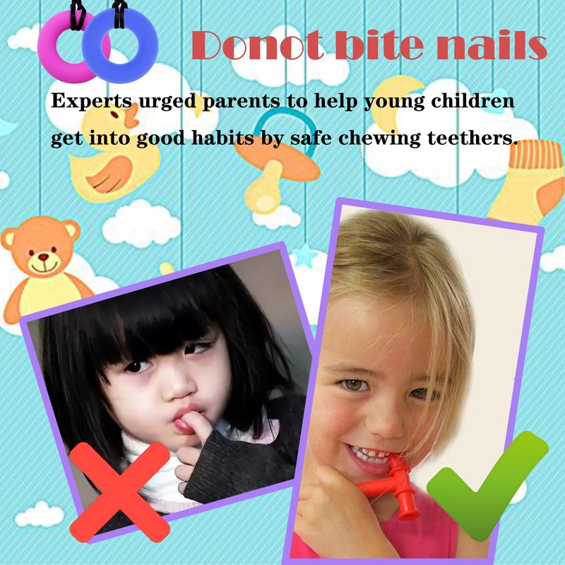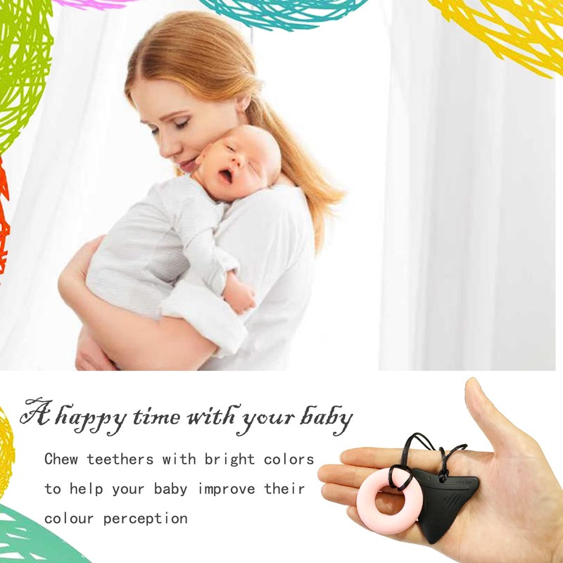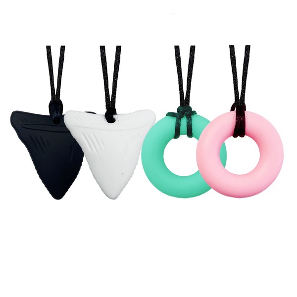 4er-Pack Baby-Kau-Halskette, Weiche Sensorische Stillhilfen Silikon Haifisch-Zahn-Form und Donut-Form Beißring für Erwachsene & Kleinkinder