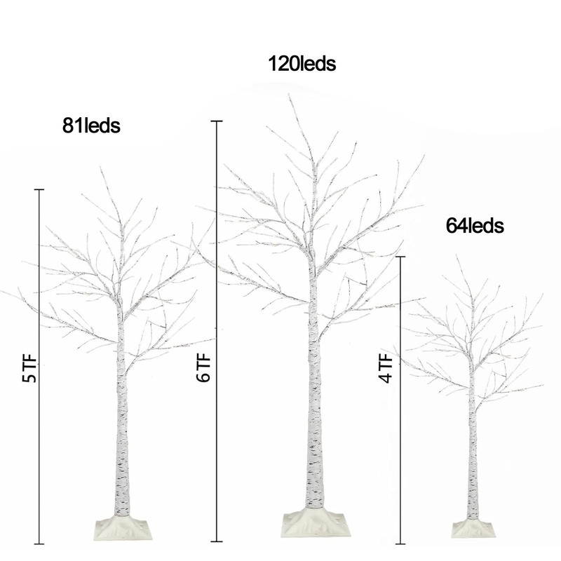 4FT 5FT 6FT Christmas Tree with Lights, 3PACK Smart Lighted Birch Tree with APP Home Decor, Warm White, Timing, Dimmer, Group Control, Music Sync, Christmas Room Decorations Indoor/Outdoor Use