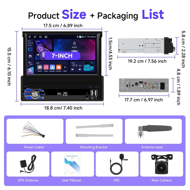 - Enhanced Safety & Control: The car radio 1 din includes a seamless AHD reversing camera for a clear rear-view image during parking, aiding obstacle avoidance. Maintain total focus with steering wheel control, allowing you to adjust volume, switch tracks/stations, and answer calls without taking hands off the wheel. Dual USB ports support media playback and charging.Additionally, it support AUX connection