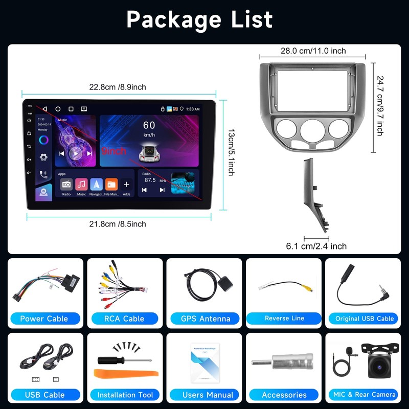 - More Functions & Note: Steering Wheel Control/Rear-view Camera Input/ RCA Output/ Split Screen / Language setting/ Double USB interface/ Audio and Video input and output; Please compare the dash size and shape of your car with the car screen for Ford Focus before installation (you can find detailed information about the size and shape in the pictures)