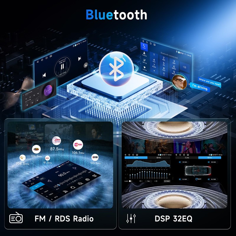 • 【Built-in DSP/ Bluetooth/ 2 USB Ports】DSP can enhance your sound quality with digital signal processing, which reduces noise, distortion, and interference. The 32-band equalizer allows users to customize music effects according to their personal preferences. Bluetooth can pair your phone or other devices with the device via bluetooth, and stream music, make calls, and transfer files wirelessly. Plug in USB flash drives or hard disks to the device via USB ports, and play music, videos, photos, etc. on the device. You can also charge your devices via USB ports