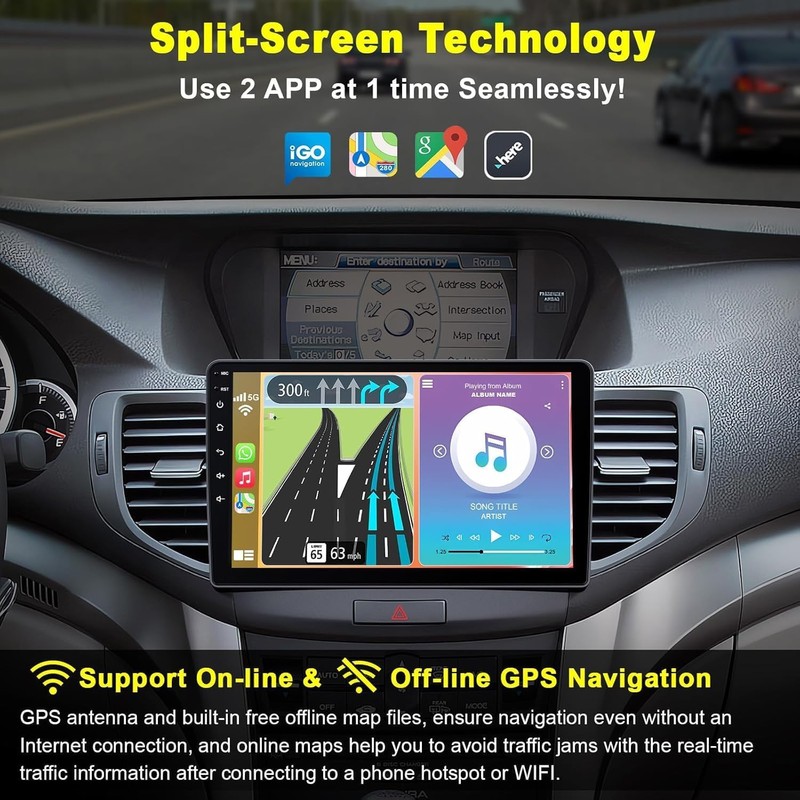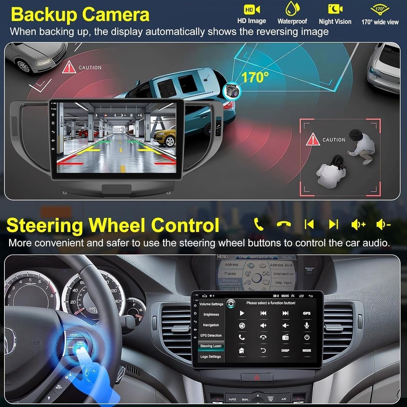 - 【Wired/Wireless CarPlay & Android Auto】Android 13 car stereo for Acura TSX / Honda Spirior support wired/wireless CarPlay and Android Auto access the apps of your phone. You also can easily use muisc, GPS navigation, message, calls and so on via waking up Siri or Google assistant, so the high performance Acura TSX radio can give you a better driving experience.