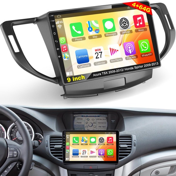 4G+64G Car Radio Stereo for Acura TSX 2009-2014/Honda Spirior 2009-2013, Wireless Carplay&Android Auto with Android 13 Support Bluetooth/Voice Control/GPS/WiFi/Back-up Camera/SWC/FM