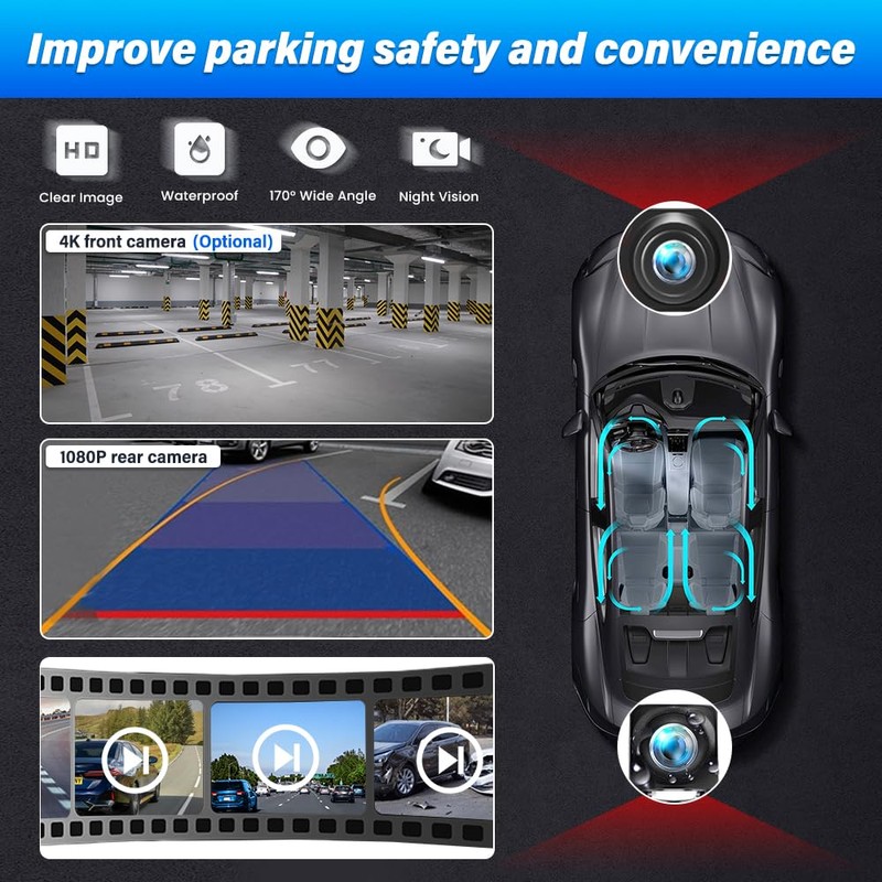 • 【Rear Camera & Steering Wheel Control】This car audio receivers unit includes an AHD reverse camera that automatically displays the rearview image when backing up, ensuring safer parking. Paired with intuitive steering wheel controls, you can effortlessly manage music, channels and volume, all without taking your hands off the wheel, ensuring a safer, smoother and more enjoyable drive