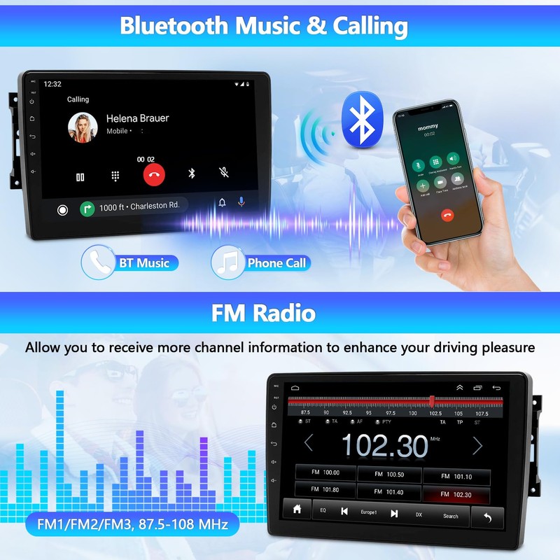 • Built-in WIFI: connect to WIFI, you will find a new world, the most convenient is the online map. Built-in blue-tooth hands-free and phone book to play music directly over the phone. Online music you can transfer the music to the car stereo by frequency modulation to enjoy the original car stereo sound,with 18 preset stations.