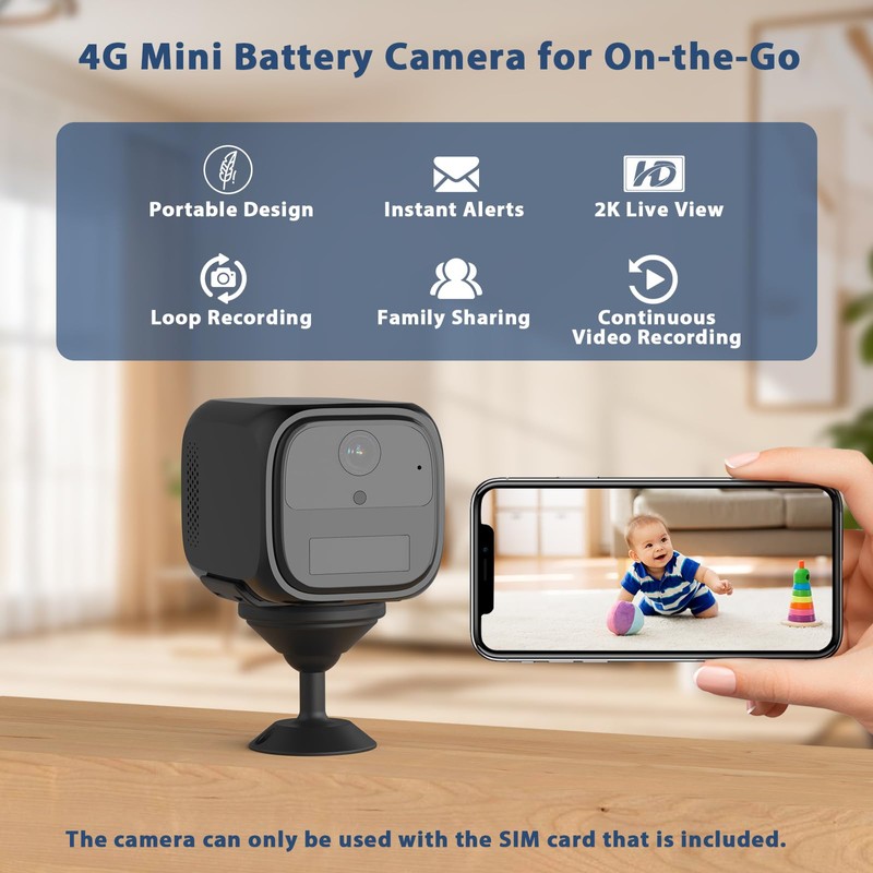 - 【Built-in SIM Card & 300MB Free Trial Data】This non wifi security camera includes a prepaid 4G LTE SIM card with 300MB of free trial data. The SIM supports Verizon, T-Mobile, and AT&T 4G LTE networks, and data plans can be renewed through the app once the trial data is used. This battery-powered, cordless cellular security camera is easy to install and perfect for indoor and off-grid locations without WiFi.