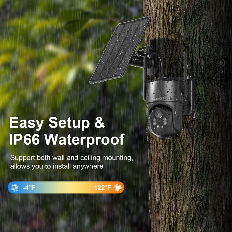 4G LTE Cellular Security Camera with SIM Card, No WiFi Security Camera Outdoor, 2K HD Security Cameras Wireless Outdoor Solar Powered, 360° PTZ Control, Human Motion Detection, 2 Way Talk, IP66