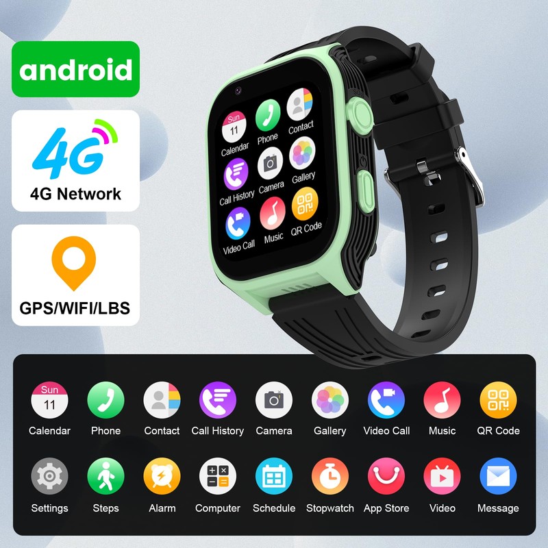 Fitgbey 4g Smart Watch for kids with gps tracker android is the fully upgraded, groundbreaking kids smart watch that gives your family the perfect solution for safety and essential connection. It's an all-in-one kid-safe phone, watch, and GPS tracker that's completely secure and thoughtfully built for kids ages 4-12.