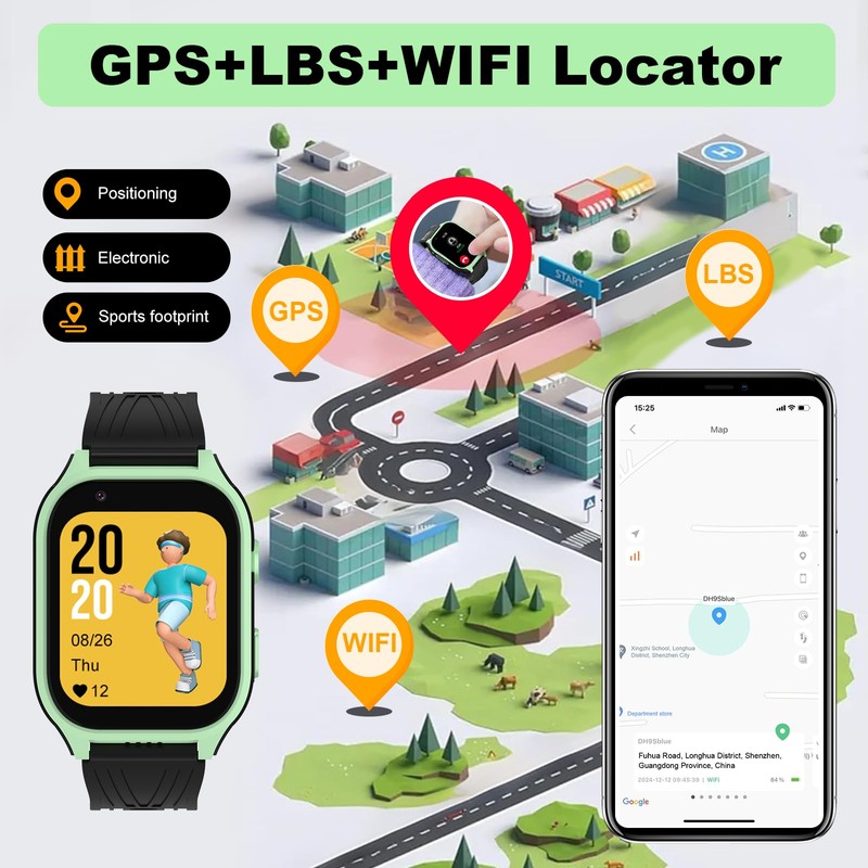 - GPS Tracker & Safety Zones: The 4G kids smartwatch gps tracker with GPS, LBS, and WIFI positioning for precise tracking. It provides three different tracking options and allows users to create personalized safe zones. Parents can check your kid's location at any time through the app. When your child leaves the safety zone, a notification will be sent to your APP to ensure your child's safety.