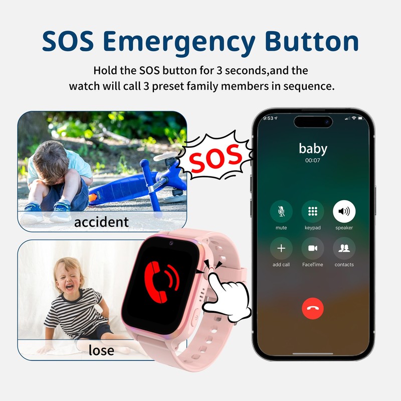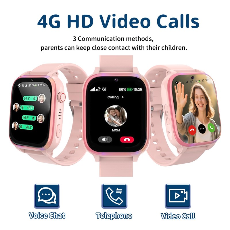 • 4G HD video call: 4G smart watch children supports HD video call, voice chat and phone function. Supports 15 digit contacts. Parents can easily manage the watch, add contacts, reject unknown callers and check the location of the children via the mobile app to stay in touch with the family at any time.