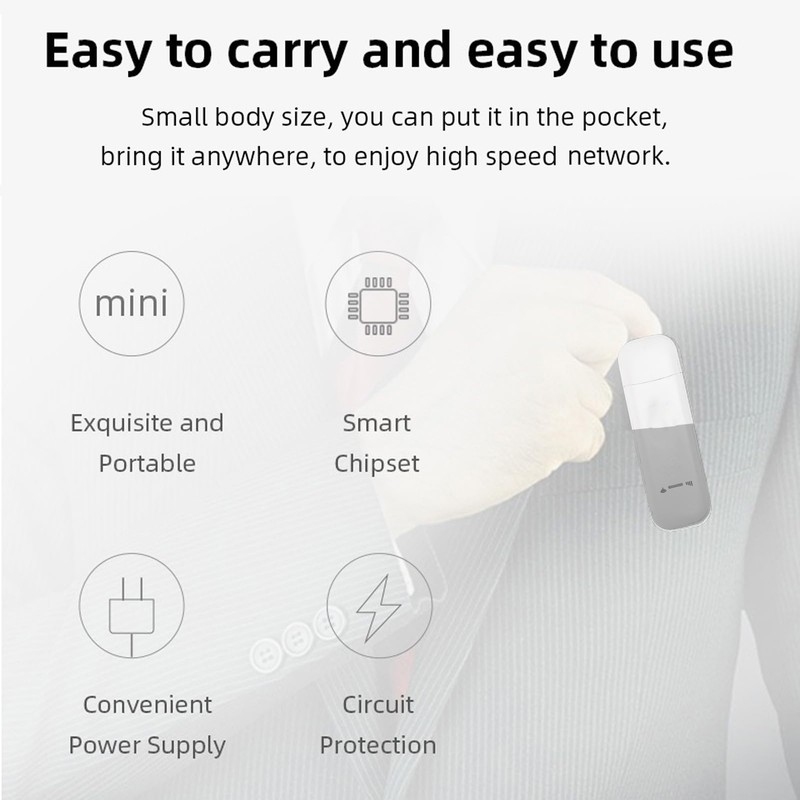 4G Wi Fi USB Modem, Pocket 4G Wi Fi Router,150 Mbps High Speed, 10 Users Support, Mobile Hotspot Smart Cordless Network Router for Office Home Dormitory Travel