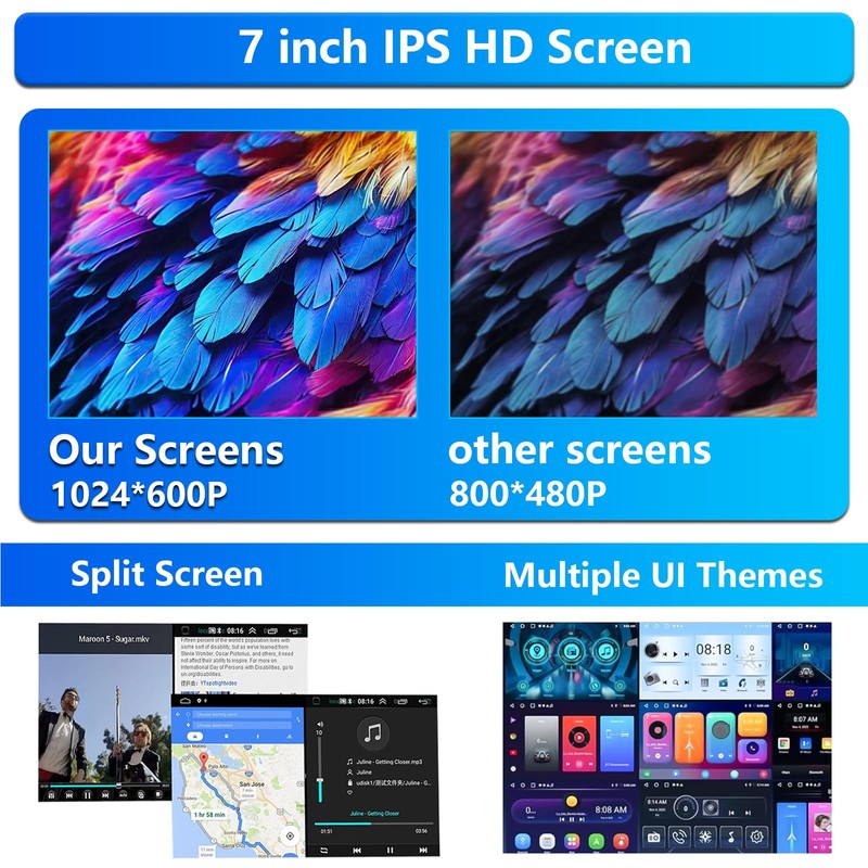 - 【Android 13 Syestem and 4GB+64GB】Our Android 13.0 car audio receivers with 7 inch IPS Touch Screen built-in 4G RAM + 64G ROM system, ensures smooth operation and faster response, 64 GB ROM for more apps installed. WiFI, Network, On-line surfing Available. After connected to WiFi or personal hotspot, this Car Stereo allows you install android Apps from Application Store. You are driving with a smart Car stereo like a ipad