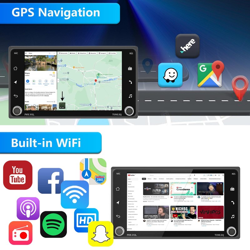 - 【GPS Navigation & WIFI】The GPS Navigation Head Unit built-in GPS module and external GPS antenna for online or offline map navigation. Offline map data preloaded, ready to use after installation,includes voice and visual turn-by- directions 11 million+ POI library, 2D & 3D routes, fuel tracker. this car radio also supports WIFI Hot-spot connection, you can easily access and download online navigation APPs, Instagram, Facebook, TikTok, etc on Play store.