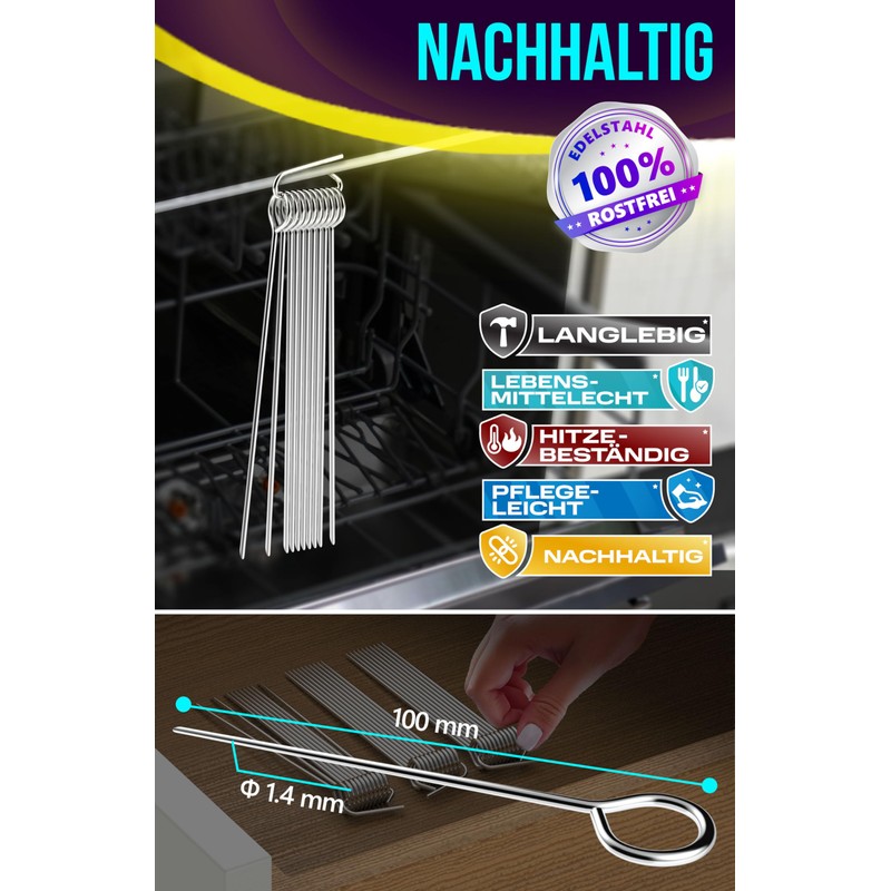- Sustainable: the reusable roulade skewers stainless steel with storage clip are durable, food-safe, heat-resistant, non-stick, and easy to remove; easy to clean and dishwasher safe.