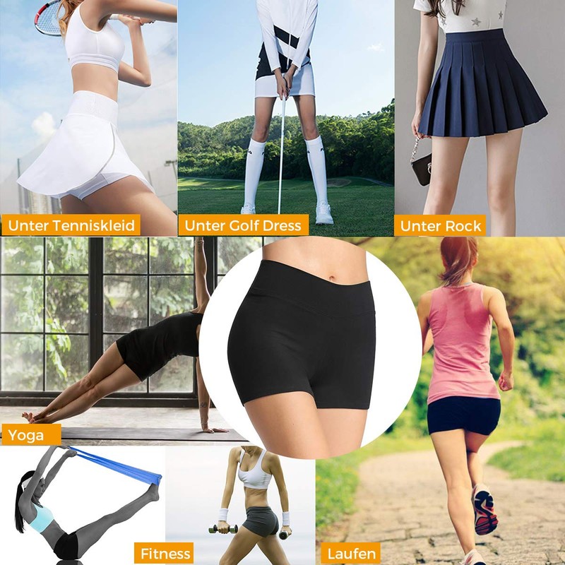 - Short trunks/shorts for yoga and fitness; the shorts can also be worn under a dress or mini skirt.