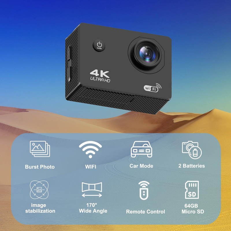• 【Various Accessories Set】Action camera is equipped with a wealth of accessories, including 2 rechargeable batteries, 64G memory card, etc. Whether it is outdoor sports or travel adventures, it can meet your shooting needs, enhance your use experience, and make each shooting more convenient and smooth