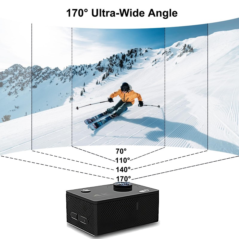 • 【Wireless Remote Control Operation】4K waterproof camera is equipped with 2.4G wireless remote control, you can easily control the action camera to take pictures or record videos, allowing you to capture every unforgettable moment without stopping during exercise