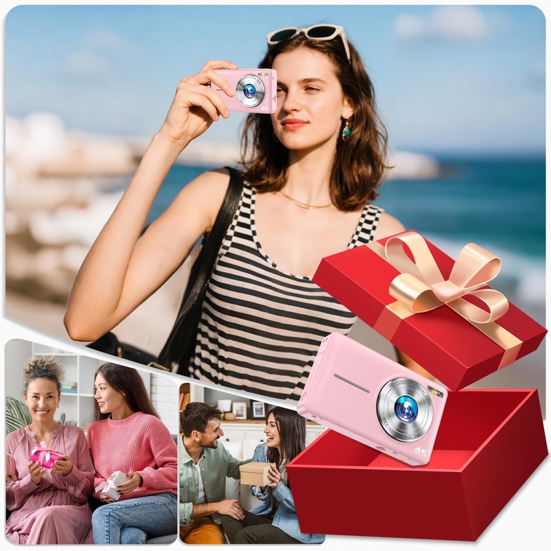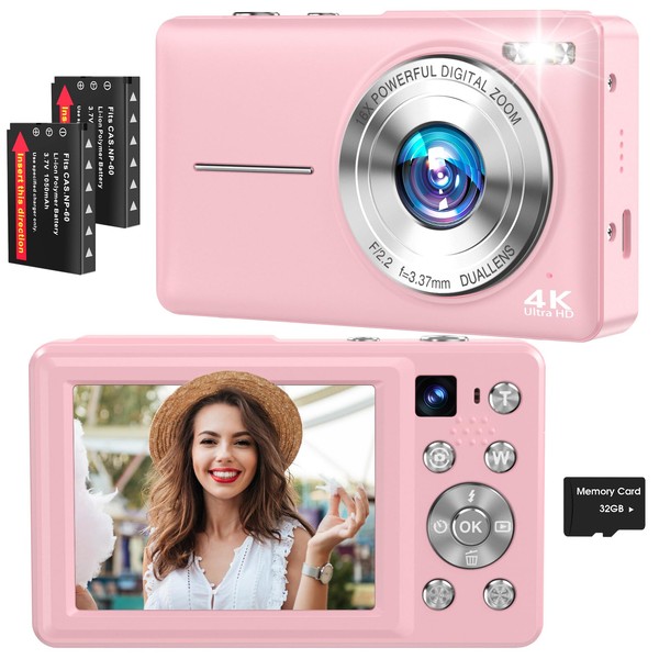 - 【Ultra-Portable & Ideal for for Beginners】 - Comes with 2 rechargeable batteries and a 32GB card, so you can start creating immediately. Lightweight and small enough to fit in your pocket, this digital camera is the ideal travel companion for adults, teens and kids. If you need assistance while using the camera, our 24H/7 after-sales service will be there to provide you with timely help.