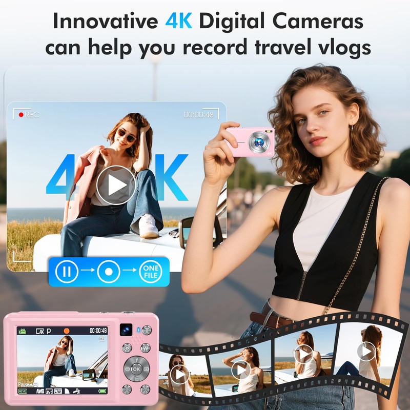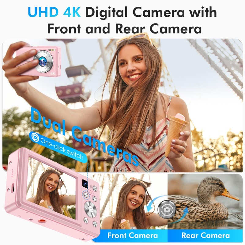 - 【Ultra Clear 4K Video & 64MP Photo】 - Capture life's stunning details in ultra-clear 4K resolution and take incredibly sharp 64MP high-resolution photos. This vlogging camera ensures you record every moment with vivid clarity, making it an ideal choice for travel, birthdays, and everyday adventures.