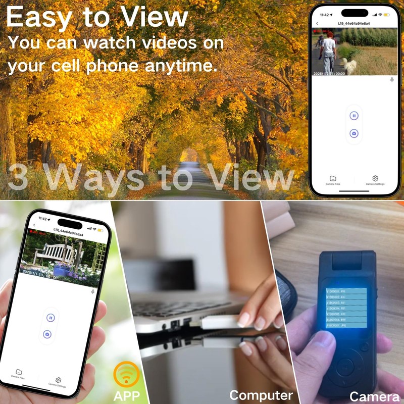 - 3 Playback Options: 1. Watch directly on the 1.54-inch high-quality LCD screen. 2. Use the Wi-Fi hot spot to view or download videos and photos in real-time through the app on your phone. 3. Play videos on your laptop or PC.