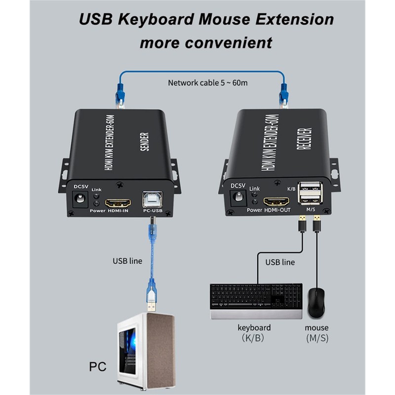 4K HDTV 120M KVM Extender HDMI Compatible USB Extender, CAT6 RJ45 Lan Ethernet Extender with Loop 3.5mm Audio IR Control (60M)